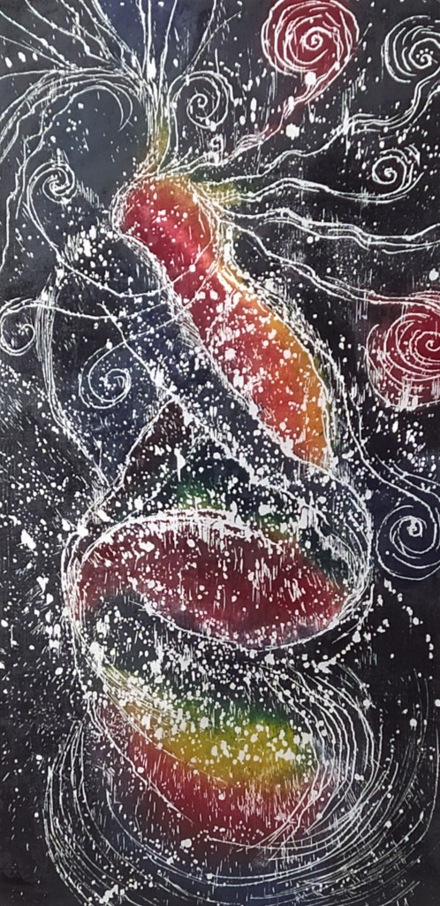 ΕΛΙΣΣΑΒΕΤ ΔΙΟΝΥΣΟΠΟΥΛΟΥ, Δημήτρης Λιαντίνης: «Γκέμμα», 120×60 cm, έγχρωμη ξυλογραφία